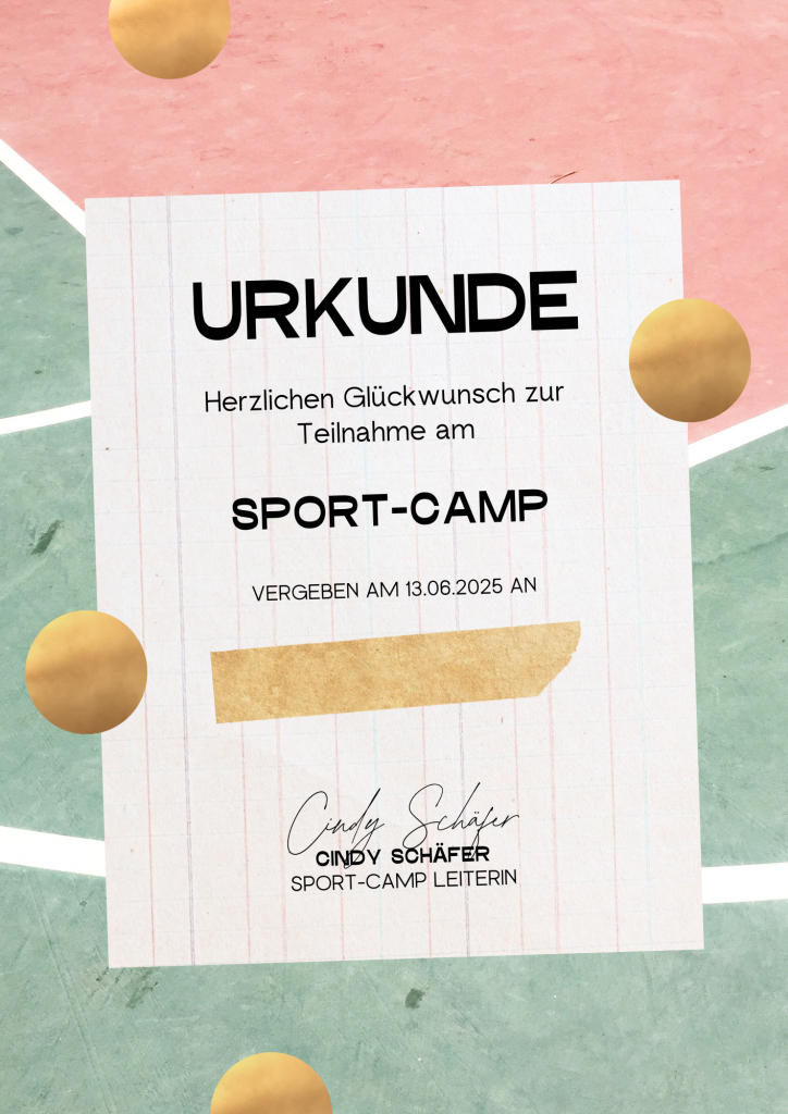 Teilnehmende Kinder vom Sportcamp erhalten im Anschluss natürlich eine Urkunde als Erinnerung an ihre erbrachte Leistung